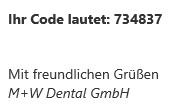 Nach Ihrer Registrierung sind Sie sofort im Shop angemeldet und können Bestellungen tätigen. Eine Registrierungsbestätigung erhalten Sie separat per E-Mail. Nach Eingang Ihrer Registrierung und Prüfung Ihrer Daten wird Ihr Shop-Konto mit Ihrer vorhandenen Kundennummer bei M+W Dental verknüpft oder eine neue angelegt.