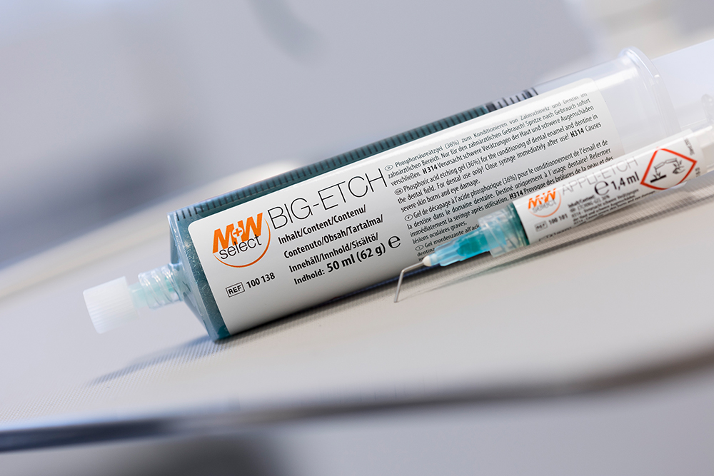 Die Ätzgele von M+W Select überzeugen durch ihr optimales thixotropes Fließverhalten, die eine punktgenaue Platzierung ohnen Verlauf garantieren. Ob Schmelz-Ätz-Technik oder Total-Etch-Verfahren unsere Gele bieteen Ihnen die notwendige Sicherheit für eine exzellente Konditionierung der Zahnsubstanz. Dank der speziellen Formel trocknet das Material nicht aus.