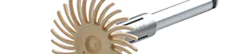 Das feine Finierrad (beige) glättet die Oberfläche, entfernt während des Konturierens entstandene Kratzer und bereitet die Oberfläche für die Hochglanzpolitur vor.