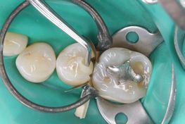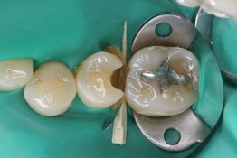 Abb. 1: Insuffiziente Composite-Füllung an Zahn 45