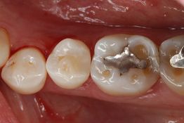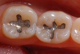 Abb. 1: Insuffiziente Amalgamfüllungen der Zähne 46 und 47
