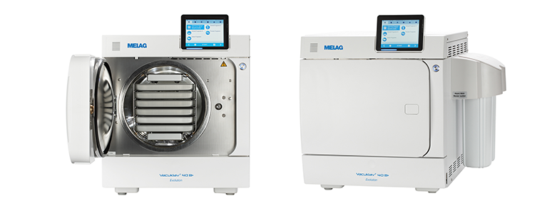 Die Prime Line Vacuclaven überzeugen zusätzlich mit hohen Beladekapazitäten für bis zu 8 kg Beladung, excellent guten Trocknungsergebnissen und erweiterten Freigabefunktionen, DRYtelligence Trocknung sichert optimale Ergebnisse und gleichzeitig eine Verkürzung der Trocknungszeit um bis zu 80 %. ProControl Freigabe ermöglicht Chargenfreigabe und Benutzerauthentifizierung direkt am Display ohne extra Software. Barcode-Etikettendruck mit MELAprint 80 für die Kennzeichnung und lückenlose Rückverfolgung der Instrumente. Geräteabmessung für beide Geräte: B47 x H50 x T64 cm, passt auf 60 cm Tischplatte.