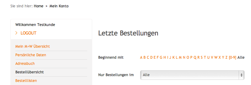 Klicken Sie oben recht auf “Mein Konto”, wählen Sie anschließend das Register "Bestellübersicht", hier gelangen Sie dann direkt zu Ihrer Bestellübersicht. In der Bestellübersicht finden Sie alle Produkte die Sie in den letzten 12 Monaten bei M+W Dental bestellt haben.