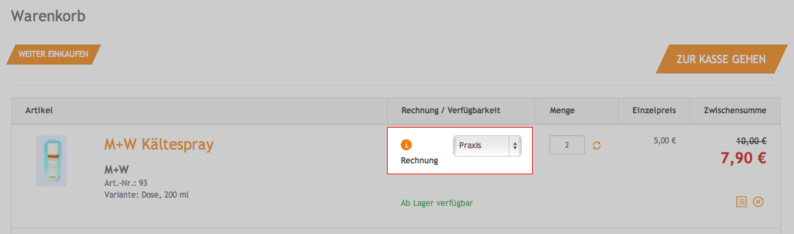 Im Warenkorb können Sie bei jedem Produkt einzeln die Kennzeichnung: