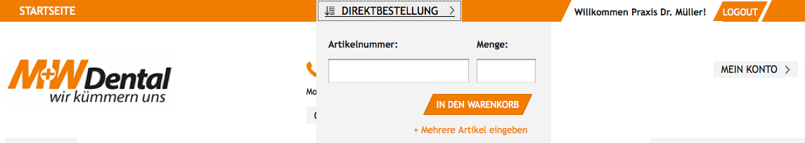 Klicken Sie dafür einfach auf „+ Mehrere Artikel eingeben“ und ein vollständiges Direktbestellformular erscheint.