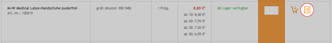 Gibt es bestimmte Produkte, die Sie regelmäßig bestellen? Ordnen Sie diese Artikel Ihren Bestelllisten zu. Klicken Sie hierzu auf das Bestelllisten-Symbol neben dem gewünschten Artikel. Bei Ihrer nächsten Bestellung können Sie sich Ihre Bestelllisten direkt anzeigen lassen. Die gespeicherten Bestelllisten finden Sie unter „Mein Konto“.
