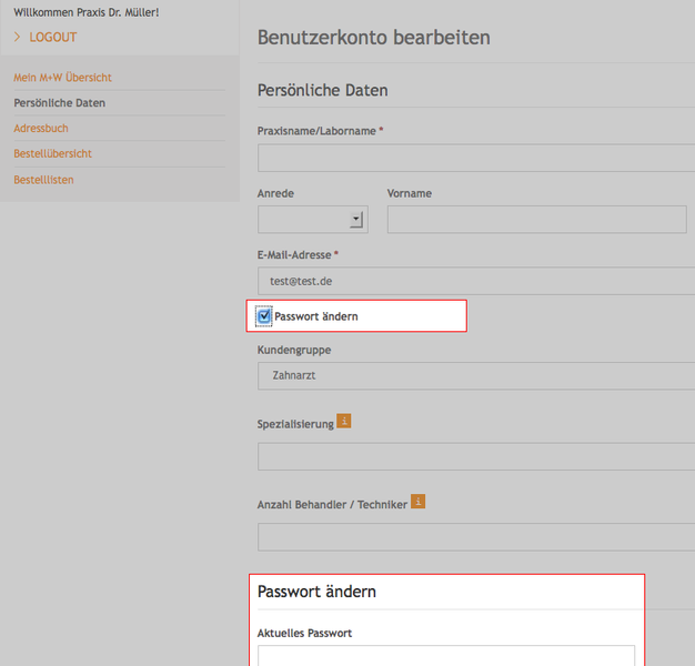 Sollte sich Ihre E-Mail Adresse oder der Ansprechpartner ändern, so klicken Sie bitte in den Bereich „Mein Konto“ und ändern sie dort unter „Persönliche Daten“ die gewünschten Felder. Ändern sich andere Informationen wie zum Beispiel der Praxisinhaber rufen Sie uns bitte unter 06042 – 880088 an oder senden Sie uns eine Email.