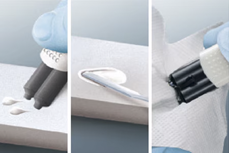 Die hygienische Automix-Spritze macht das Mischen von Hand überflüssig. 5-Sekunden-Lichthärtungsfunktion für schnellere Überschussentfernung.