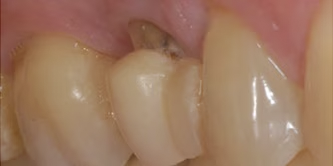 Ausgangssituation mit dem zweiten oberen Prämolar, der eine Wurzelfraktur aufweist.
