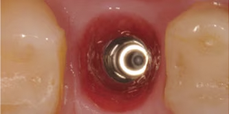 Intraorale Situation mit eingesetztem Zirkoniumoxid-Abutment.