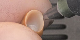 Die Klebefläche der Krone wird mit Aluminiumoxid (Partikelgröße 30 oder 50 µm bei einem Druck von 2 bar (30 PSI)) gestrahlt. Reinigung der sandgestrahlten Oberfläche mit Alkohol und ölfreier Luft.