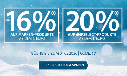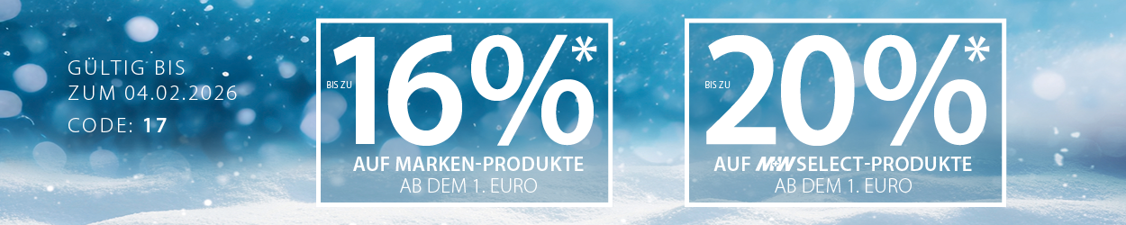 *Bis zum 04.02.2026 erhalten Sie ab dem € 1,- 14% Rabatt auf Markenprodukte und 18% auf Hausmarke. Bei Online-Bestellungen erhalten Sie ab einem Nettowarenwert von € 250,- zusätzlich 2% Online-Rabatt.