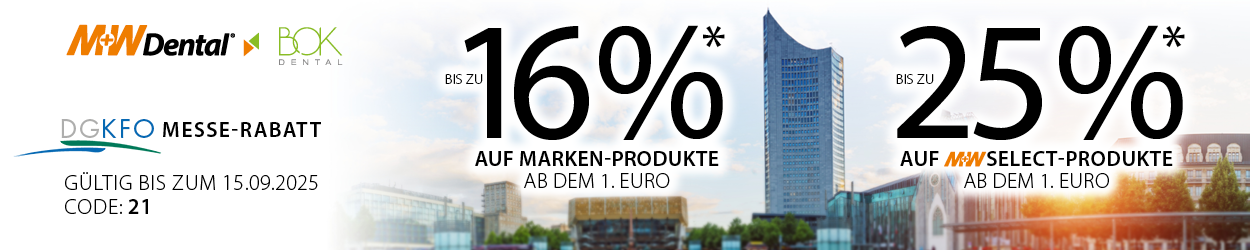 Ausgenommen sind CAD/CAM Leistungen, technischer Service, Einrichtungsgeräte sowie nicht rabattierfähige, preisgebundene und vom Hersteller für Aktionen ausgeschlossene Artikel. Die Rabatt-Aktion ist nicht mit anderen Rabatt- und Sonderaktionen kombinierbar. Irrtümer und Änderungen vorbehalten.