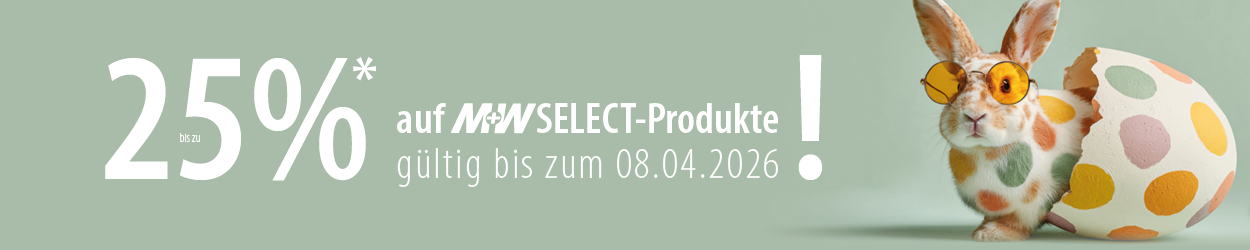 *Bis zum 08.04.2026 erhalten Sie ab dem € 1,- 23% Rabatt auf M+W Select Produkte. Bei Online-Bestellungen erhalten Sie ab einem Nettowarenwert von € 250,- zusätzlich 2% Online-Rabatt.