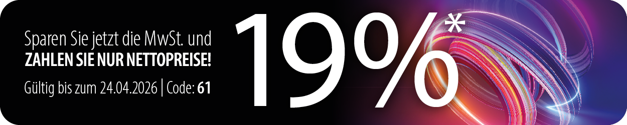 *Bis zum 24.04.2026 erhalten Sie ab dem € 1,- 15,97% Rabatt auf das gesamte Sortiment. Bei Online-Bestellungen erhalten Sie ab einem Nettowarenwert von € 250,- zusätzlich 2% Online-Rabatt.