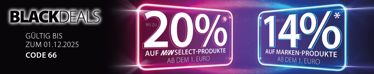 *Bis zum 01.12.2025 erhalten Sie ab dem € 1,- 12% Rabatt auf Markenprodukte und 18% auf Hausmarke. Bei Online-Bestellungen erhalten Sie ab einem Nettowarenwert von € 250,- zusätzlich 2% Online-Rabatt.